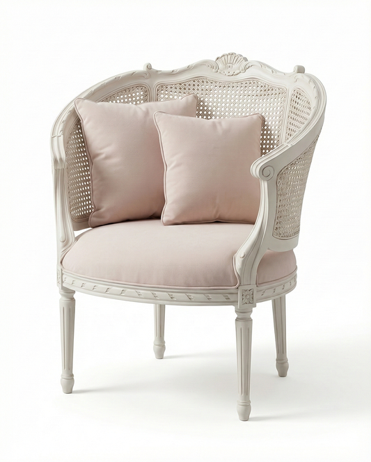 French Cane Barrel Accent Chair