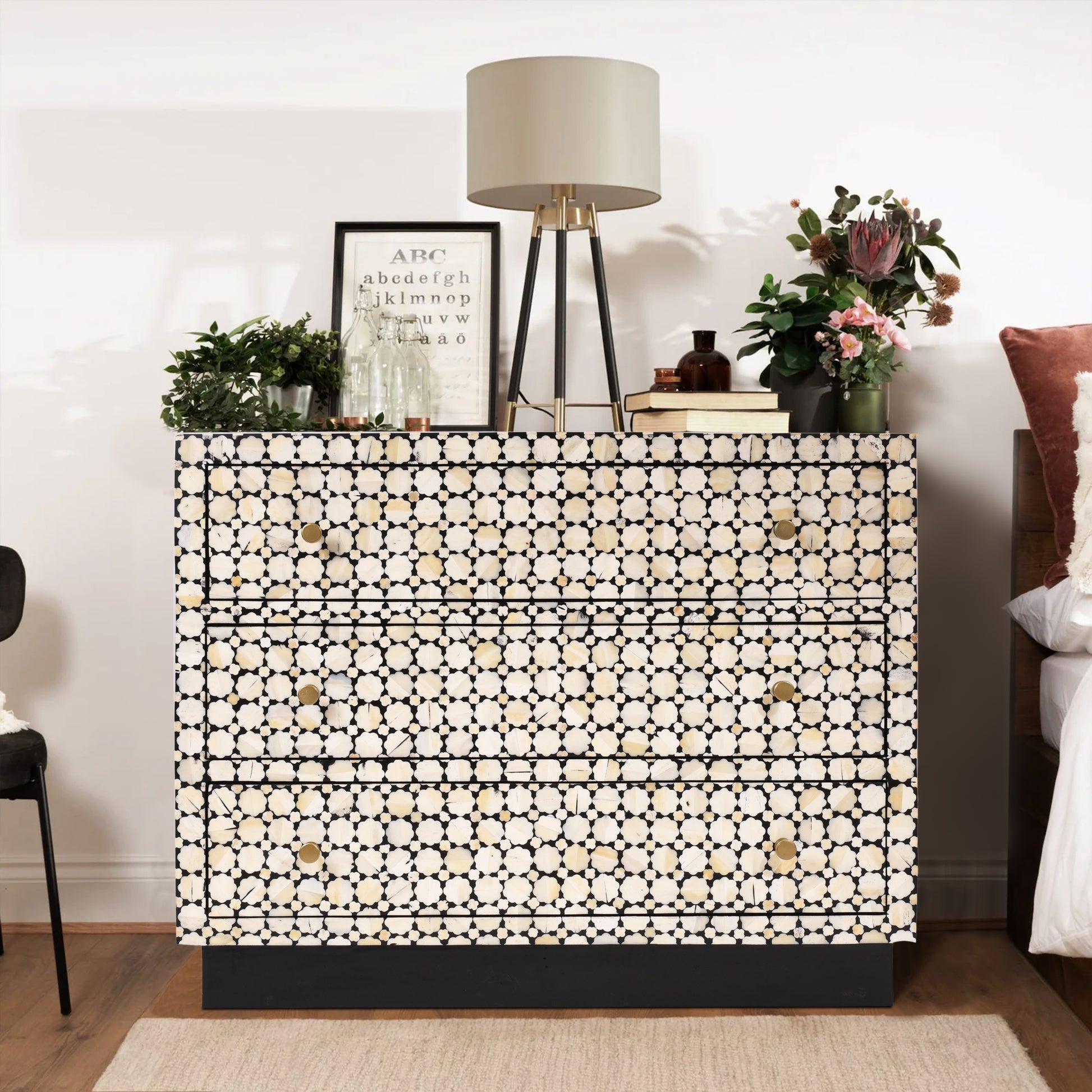 This exquisite Amer Chest is a luxurious addition to any home. Made with the finest craftsmanship and intricate details, it exudes elegance and sophistication. Its spacious compartments offer organization and functionality, while its stunning design is a true work of art. Elevate your space with the Amer Chest.