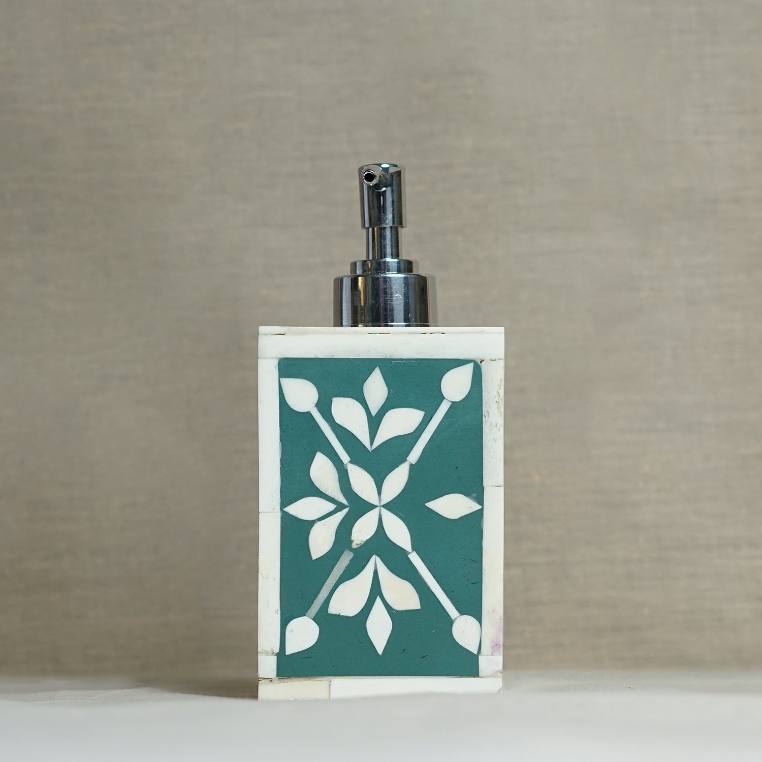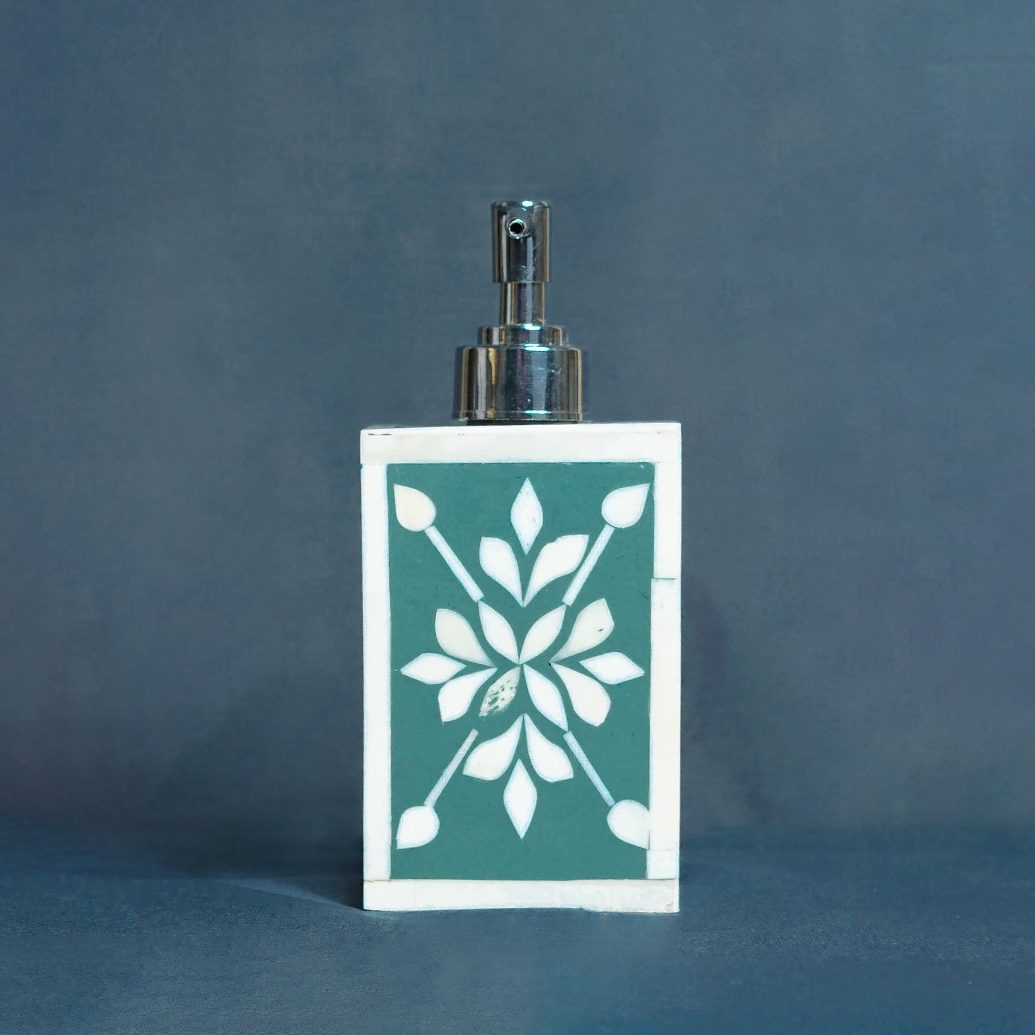 This Boneinle dispenser bottle made by metal with the intricate pattern and color scheme that makes it stand out as a decorative item. Boneinle is used in this product to make this unique and different We can use it as soap dispenser, cosmetic container etc. And the bottle has unique craftsmanship