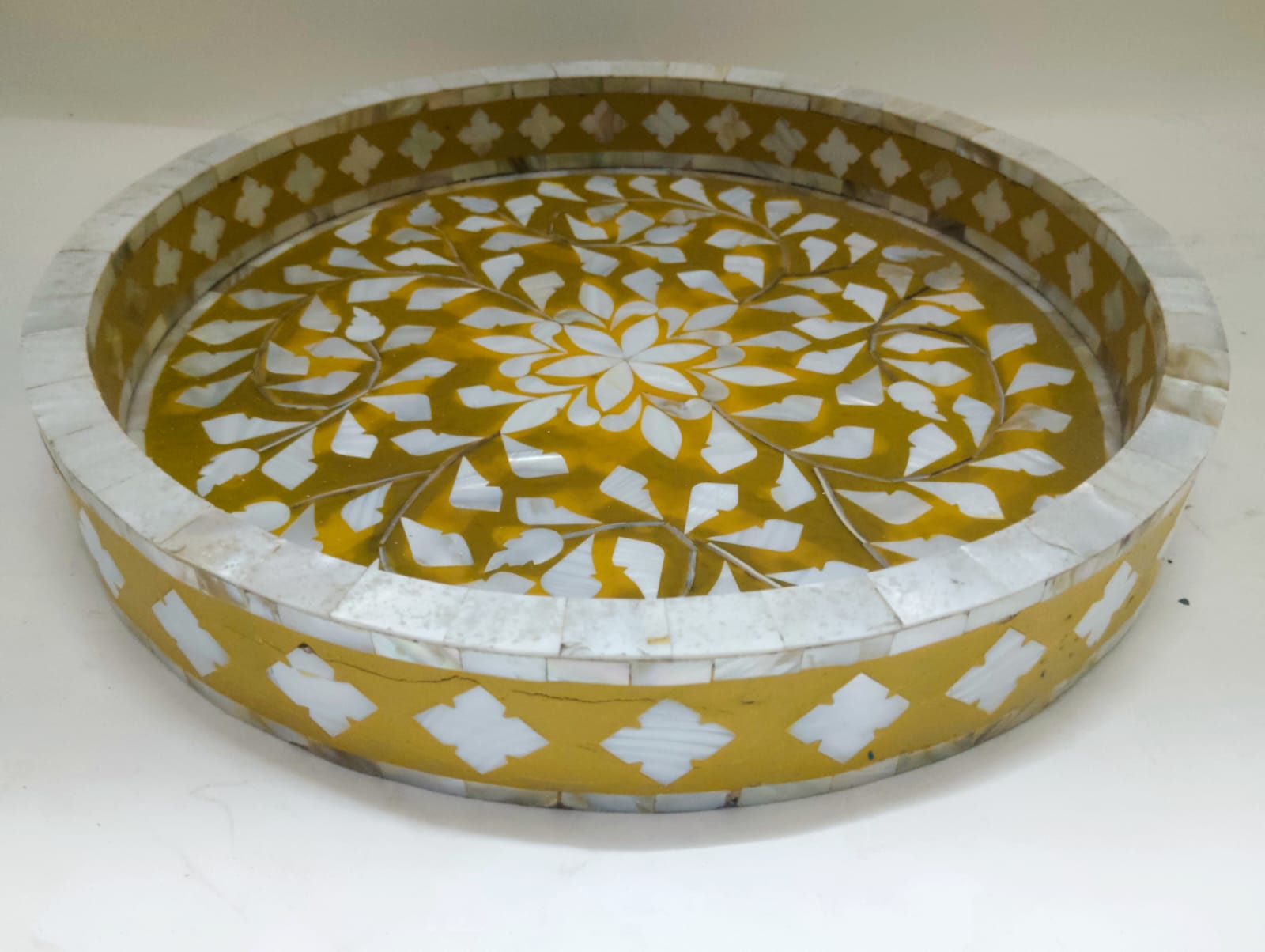 This Bone inlay tray is meticulously handcrafted by skilled artisans. Made from ethically sourced bone, ensuring the production process is both sustainable and cruelty free. It enhances the decor of any room, adding an exotic, bohemian and luxury vibe with his colour combination.